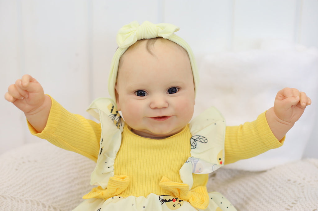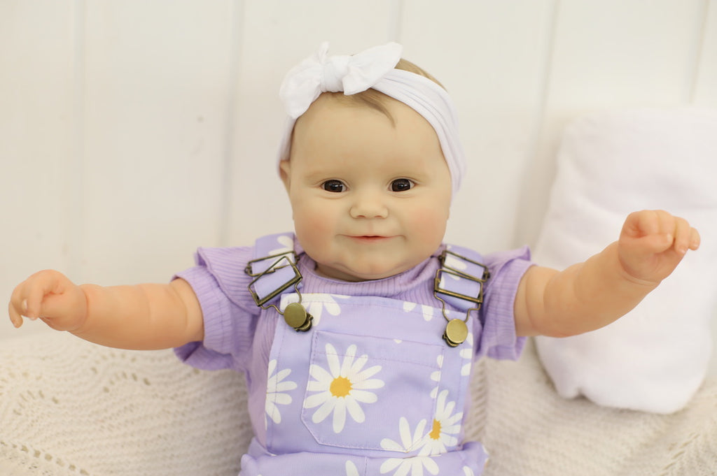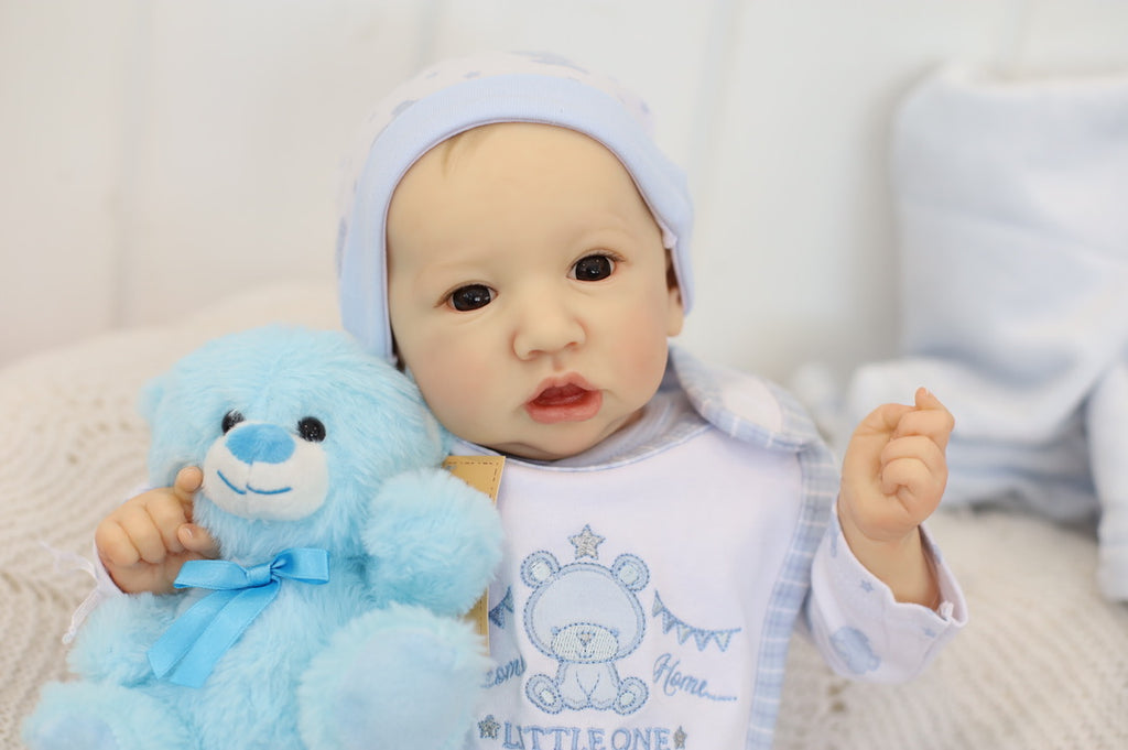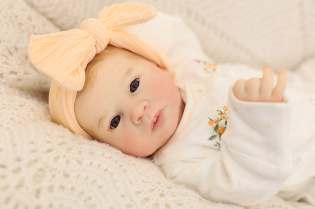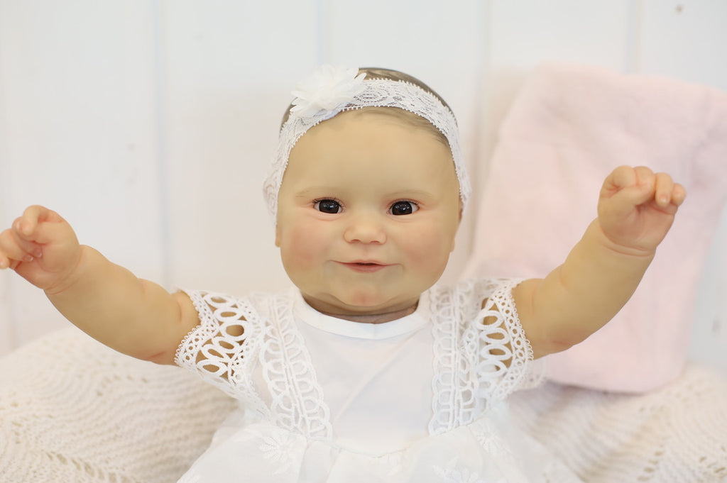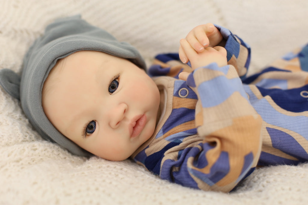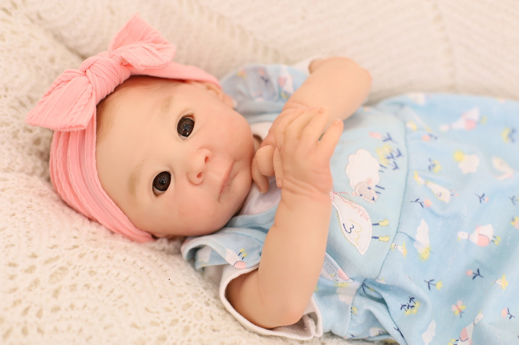 We create our Playborn dolls from genuine reborn doll kits, and paint each baby with unique care and attention. Perfect to hold and play with, playborn dolls can bring joy, comfort, and endless fun to people of all ages. Our newborn dolls are weighted with fine glass beads, while our larger toddler sized dolls are weighted with poly pellets. Included with each hand-assembled doll are a baby blanket, bottle, nappies, birth certificate, and reborn certificate of authenticity (when provided by artist).