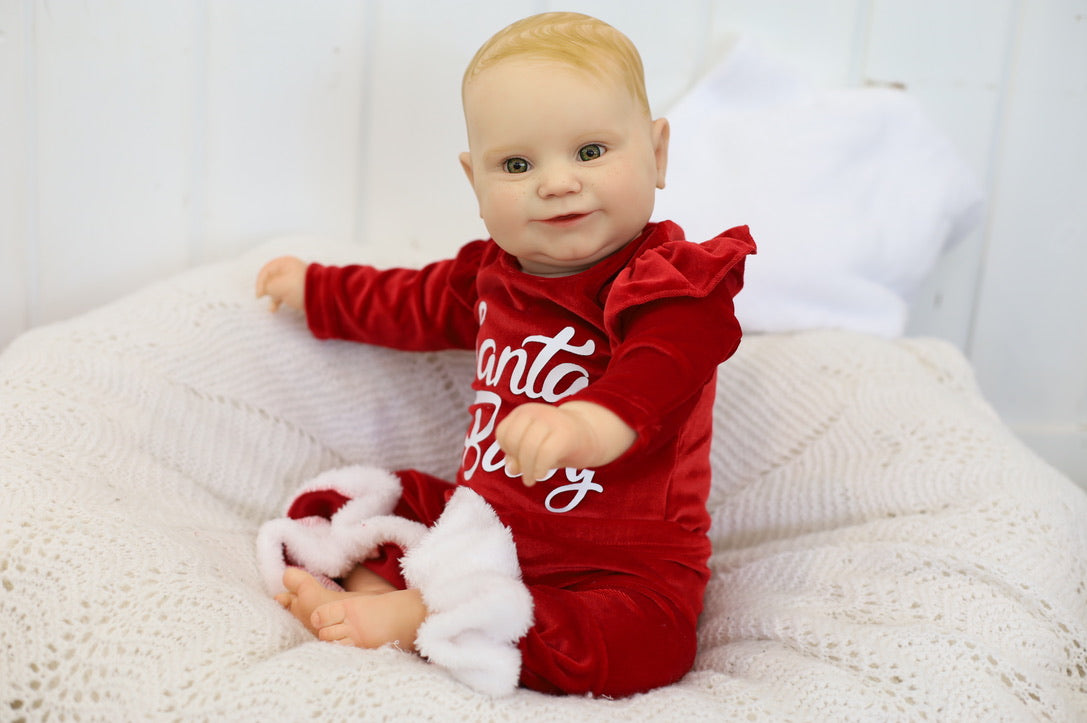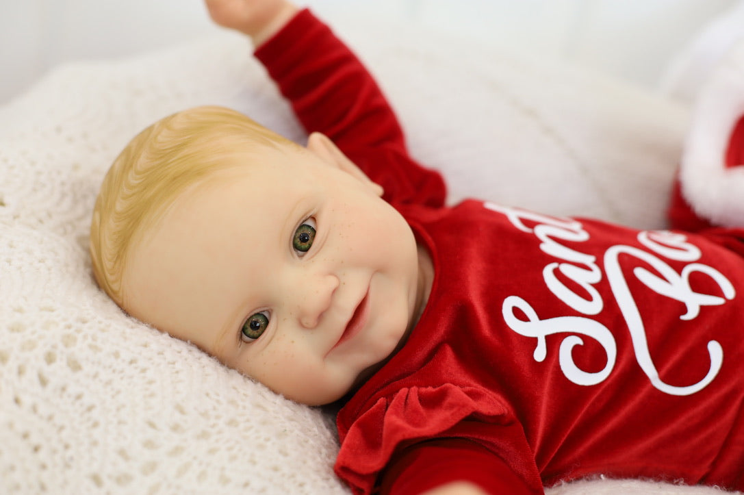 She has been hand painted at Aliyah's Playborn World by our team of talented reborn artists. Many, many layers of paint have brought this precious baby to life, making her look and feel just like a real baby.
