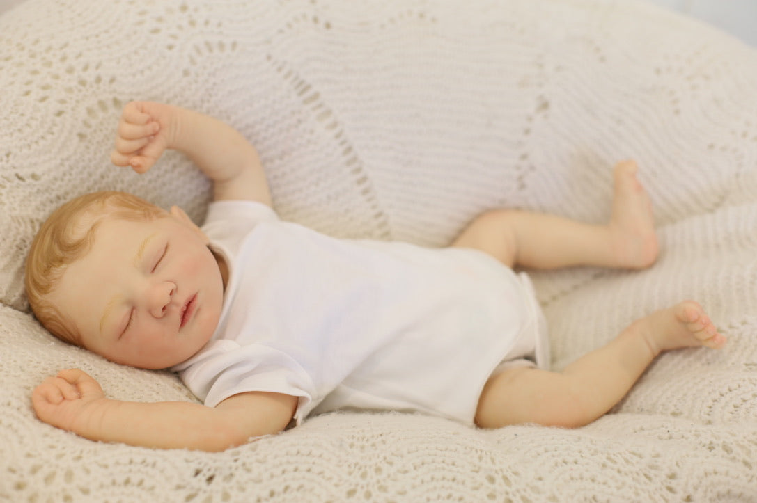 He has been hand painted at Aliyah's Playborn World by our team of talented reborn artists. Many, many layers of paint have brought this precious baby to life, making him look and feel just like a real baby.