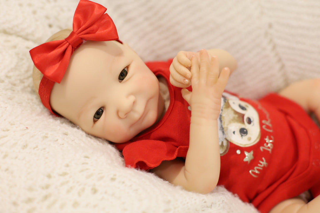 She has been hand painted at Aliyah's Playborn World by our team of talented reborn artists. Many, many layers of paint have brought this precious baby to life, making her look and feel just like a real baby.