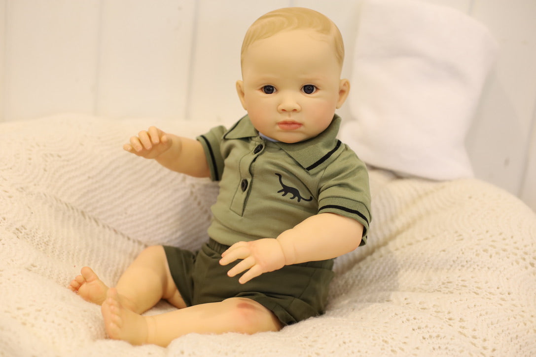 He has been hand painted at Aliyah's Playborn World by our team of talented reborn artists. Many, many layers of paint have brought this precious baby to life, making him look and feel just like a real baby.