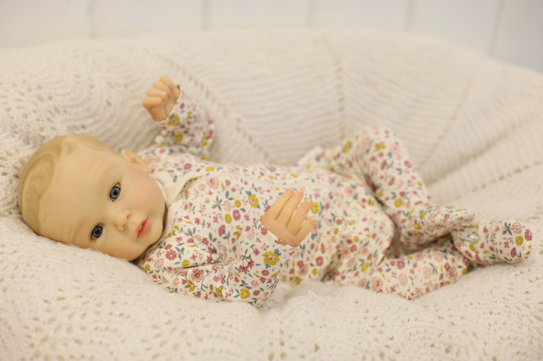 She has been hand painted at Aliyah's Playborn World by our team of talented reborn artists. Many, many layers of paint have brought this precious baby to life, making her look and feel just like a real baby.