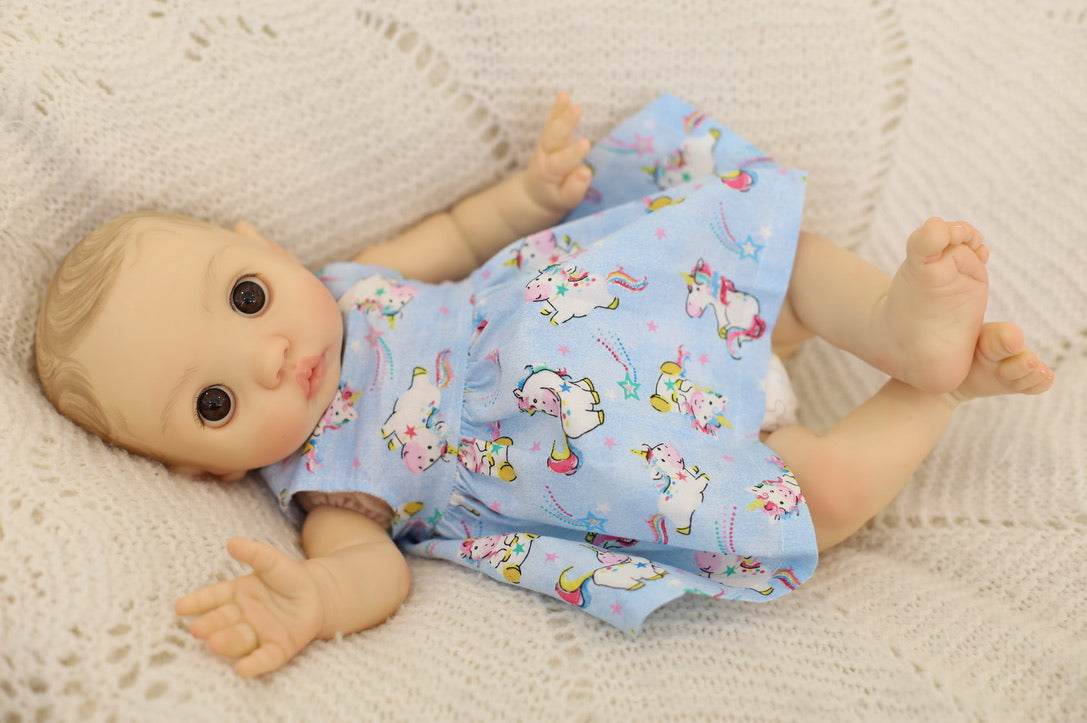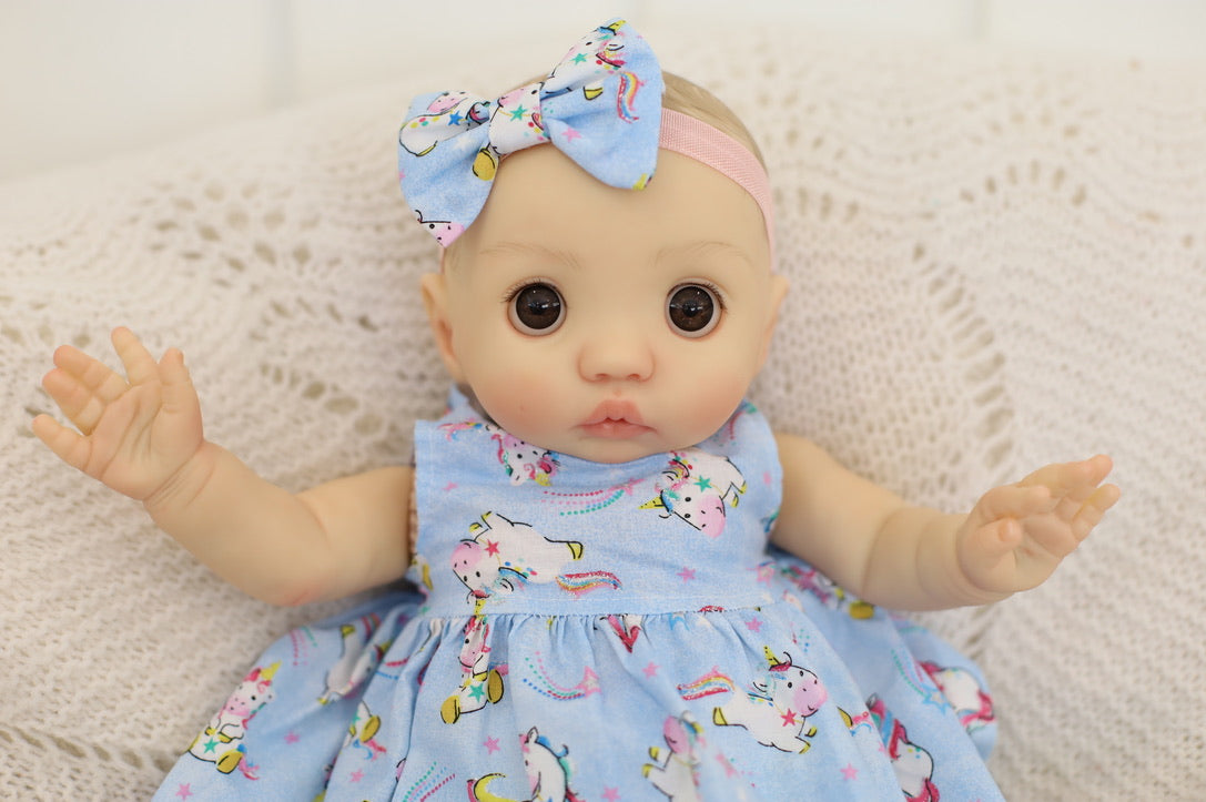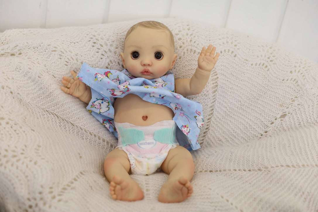 She has been hand painted at Aliyah's Playborn World by our team of talented reborn artists. Many, many layers of paint have brought this precious baby to life, making her look and feel just like a real baby.